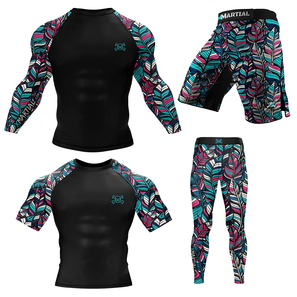 The Boho Fightwear Bundle includes Boho Rash Guard in long sleeve and short sleeve and Boho BJJ Spats and BJJ/MMA Shorts.