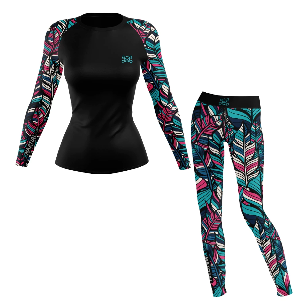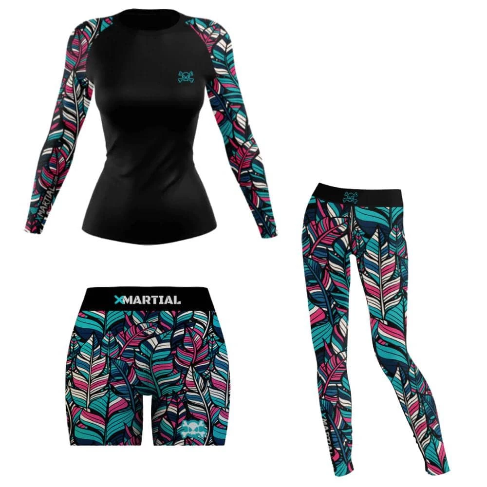 The Boho Women’s Bundle flaunts a symbolic design of being free-spirited and strong and is the perfect workout compression shirt for women. Paired with stylish compression pants and shorts, this bundle is perfect for jiu-jitsu, MMA, and as workout gear for women.