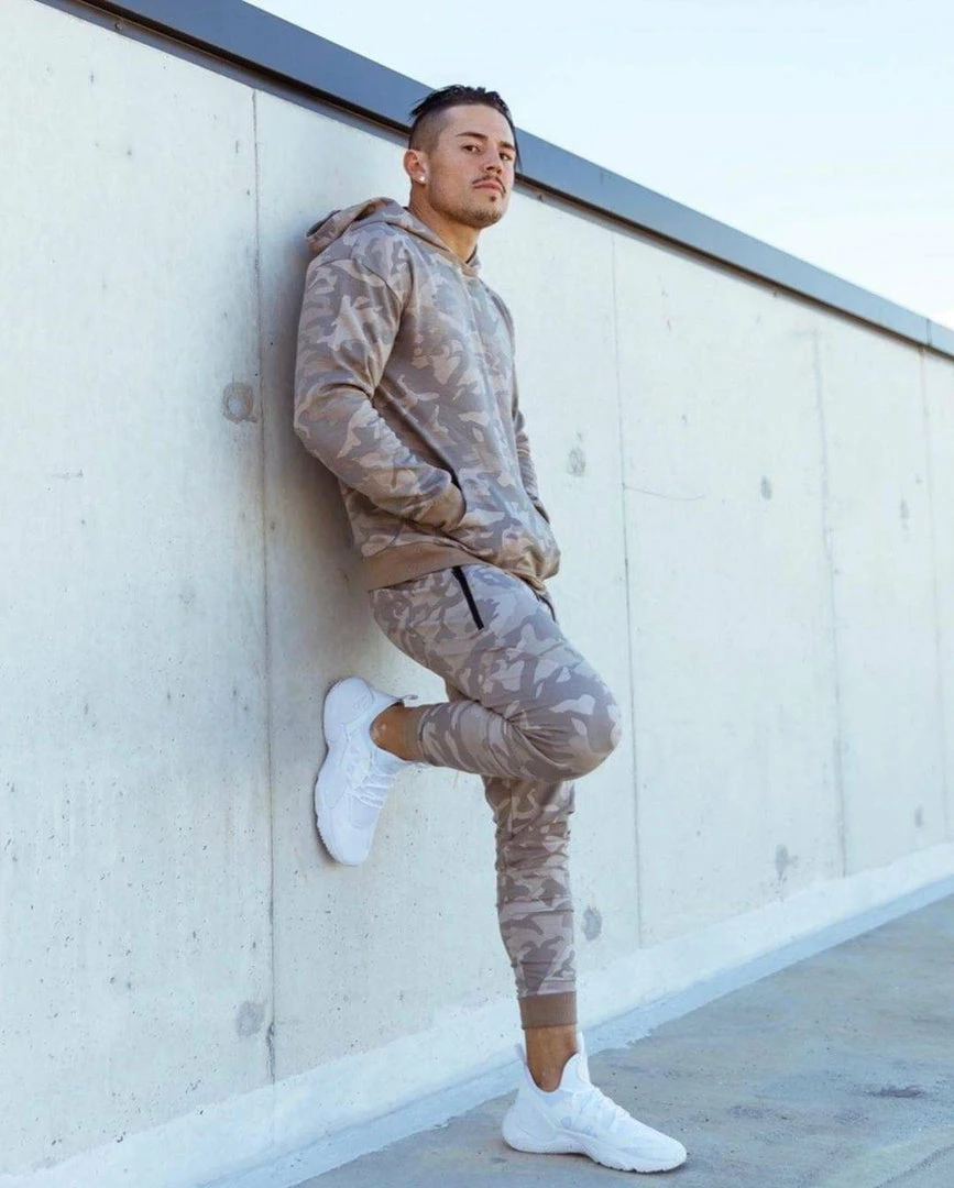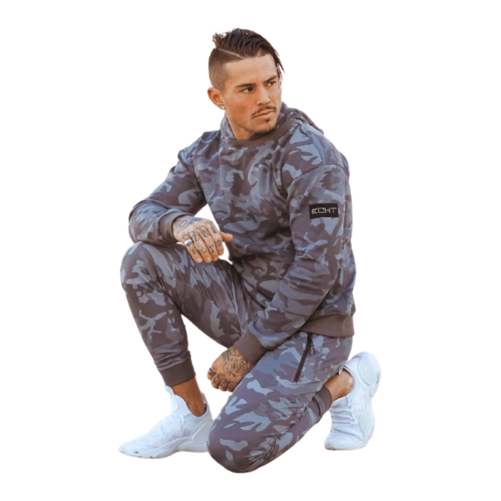 Camo Training Hoodie & Joggers features an athletic fit with a long line curved hem and a kangaroo pouch pocket that makes it functional for everyday use as well as a comfortable and stylish training option.