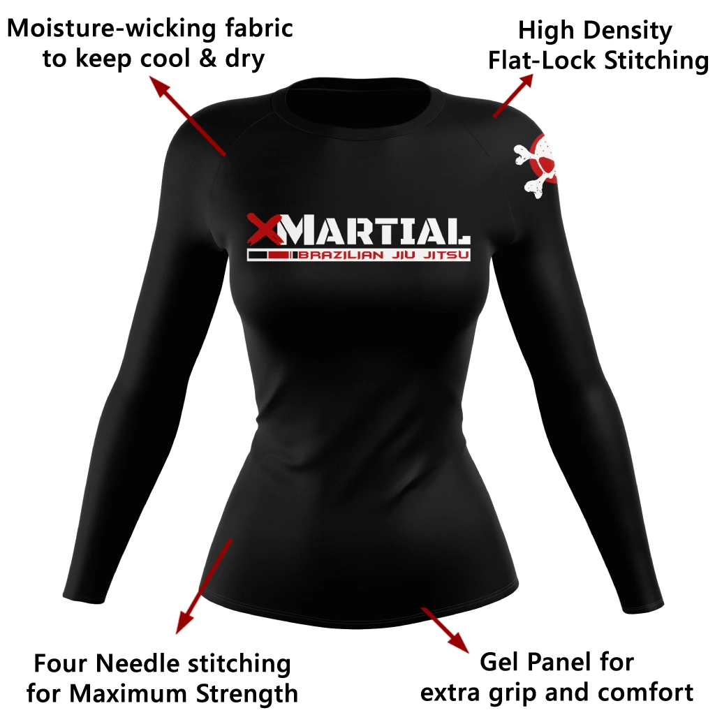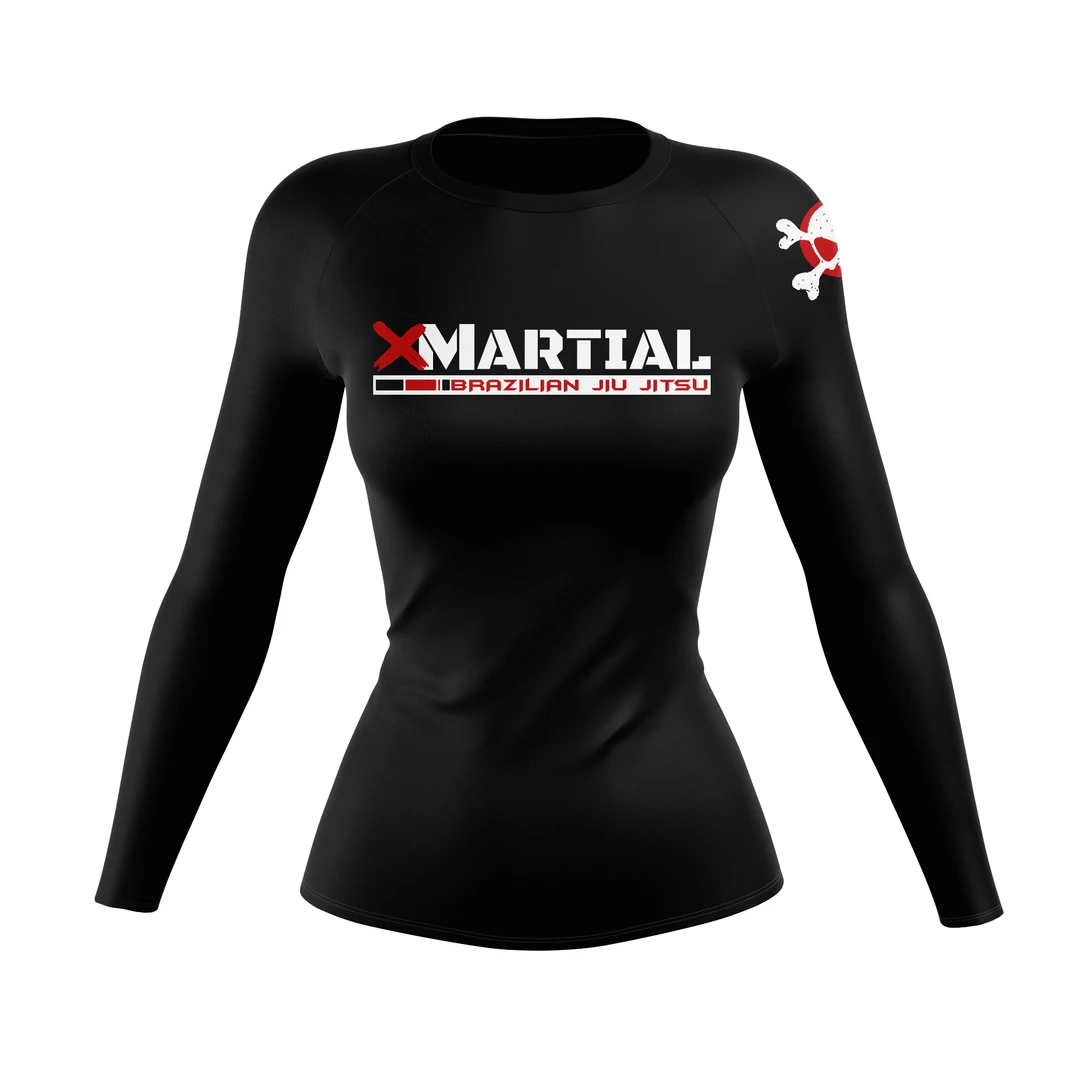 The XMARTIAL Classic BJJ Women’s Rash Guard accentuates your independence and uniqueness. Change into this before you welcome visitors to the mats. A high-quality compression shirt designed to keep you comfortable and confident during your workouts. This rash guard is great for more than just jiu-jitsu! It’s ideal for MMA and BJJ rash guards, as well as surfing and watersports, and as a workout compression shirt.
