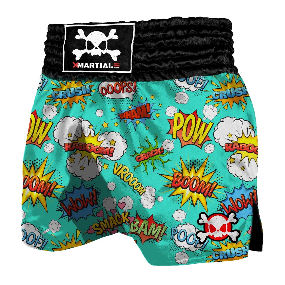 Train and compete in style and comfort with Comic Power Muay Thai Shorts, authentic designs of Xmartial. Built for intensive workouts, with a resilient, ultra-lightweight fabric that will make these your go-to shorts for years to come. With a traditional elastic waistband, these MMA shorts will stay well-positioned no matter how vigorous the training is. Convenient side slits mean these boxing shorts will allow you maximum movement.