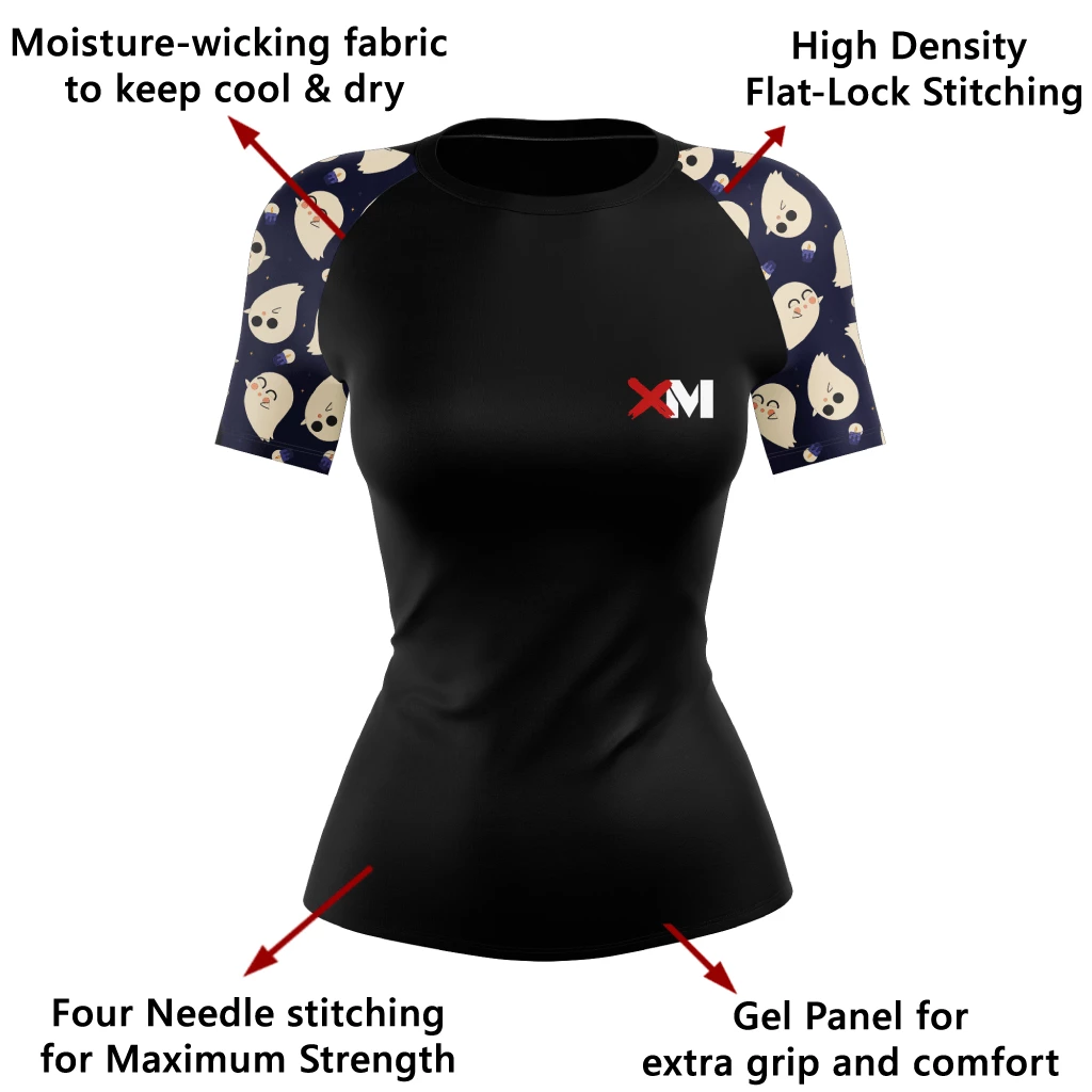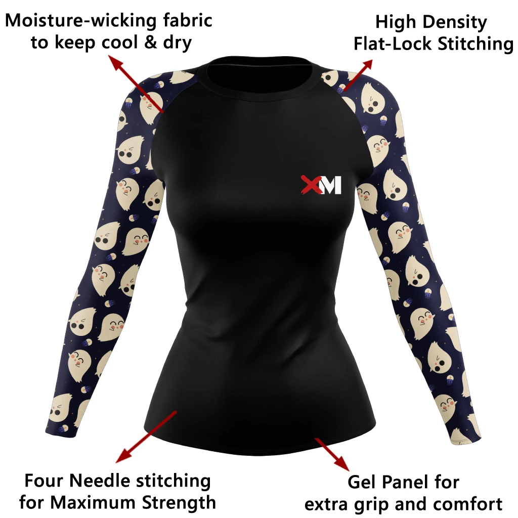 Don’t forget to bring these cute spooky friends for a unique gym experience. Cute Ghost Women’s Rash Guard is a high-quality compression shirt designed to keep you comfortable and confident during your workouts. This rash guard is great for more than just jiu-jitsu! It’s ideal for MMA and BJJ rash guards, as well as surfing and watersports, and as a workout compression shirt for women.