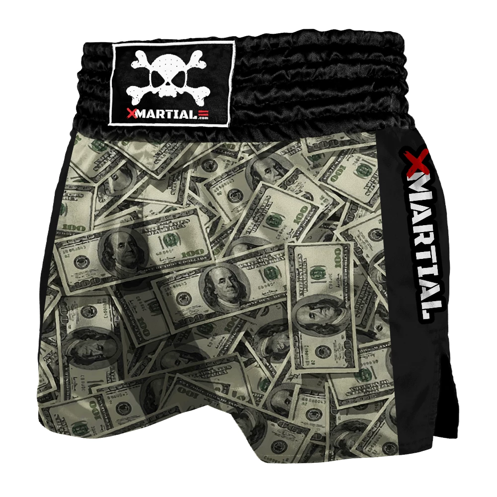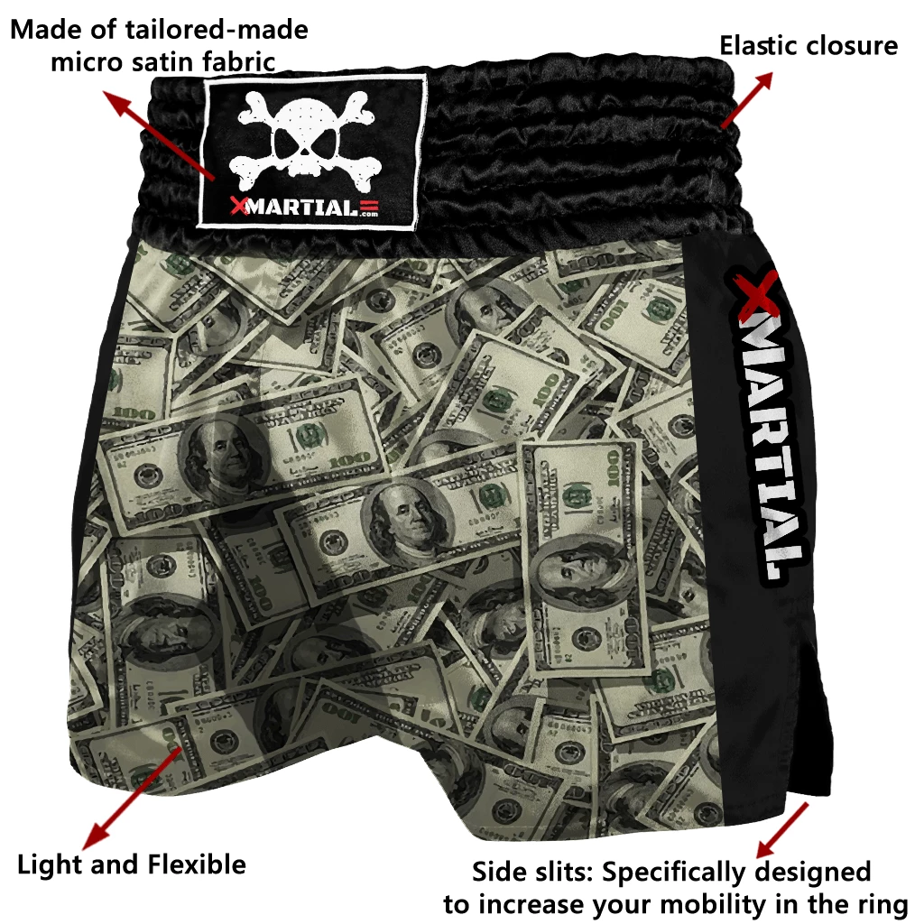 The Dollar Bills Muay Thai Shorts from XMartial bring an unrivaled combination of style, quality, performance, and value. With a traditional elastic waistband, these MMA shorts will stay well-positioned no matter how vigorous the training is. Convenient side slits mean these boxing shorts will allow you maximum movement.