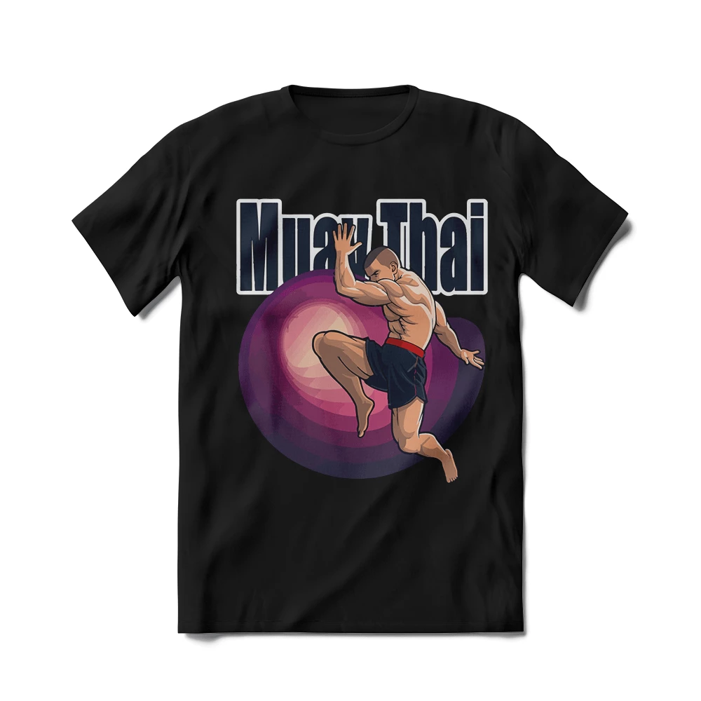 Flying Knee Muay Thai T-Shirt is designed for high-performance training and competition. This thick cotton t-shirt makes for a go-to wardrobe staple! It’s comfortable, soft, and its tubular construction means it’s less fitted.