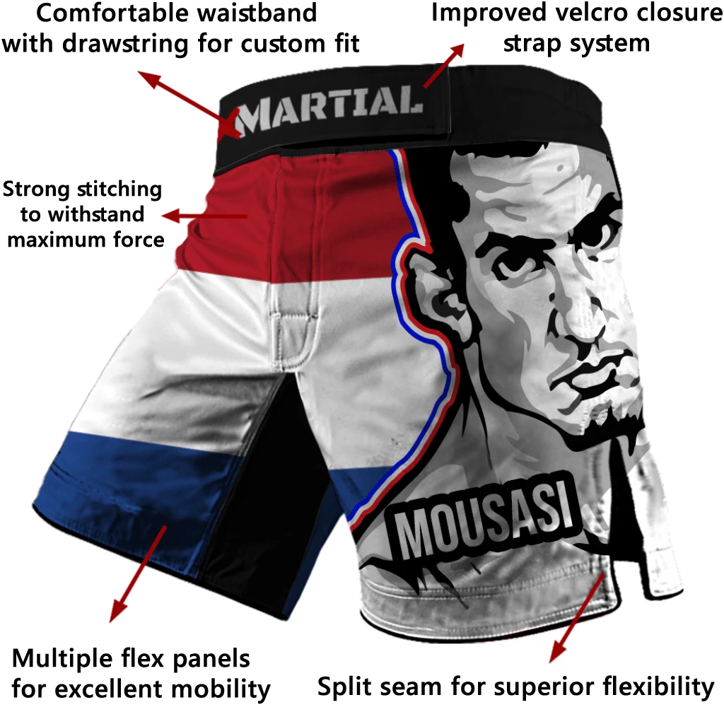 Gegard Mousasi MMA Shorts featuring one of MMA’s toughest and most talented kickboxers, Gegard Mousasi. These MMA shorts will keep up with your intense lifestyle, whether it’s extreme workouts, cardio sessions, or training on the mat. Invest in a pair of BJJ shorts that give you a full range of motion with maximum comfort.