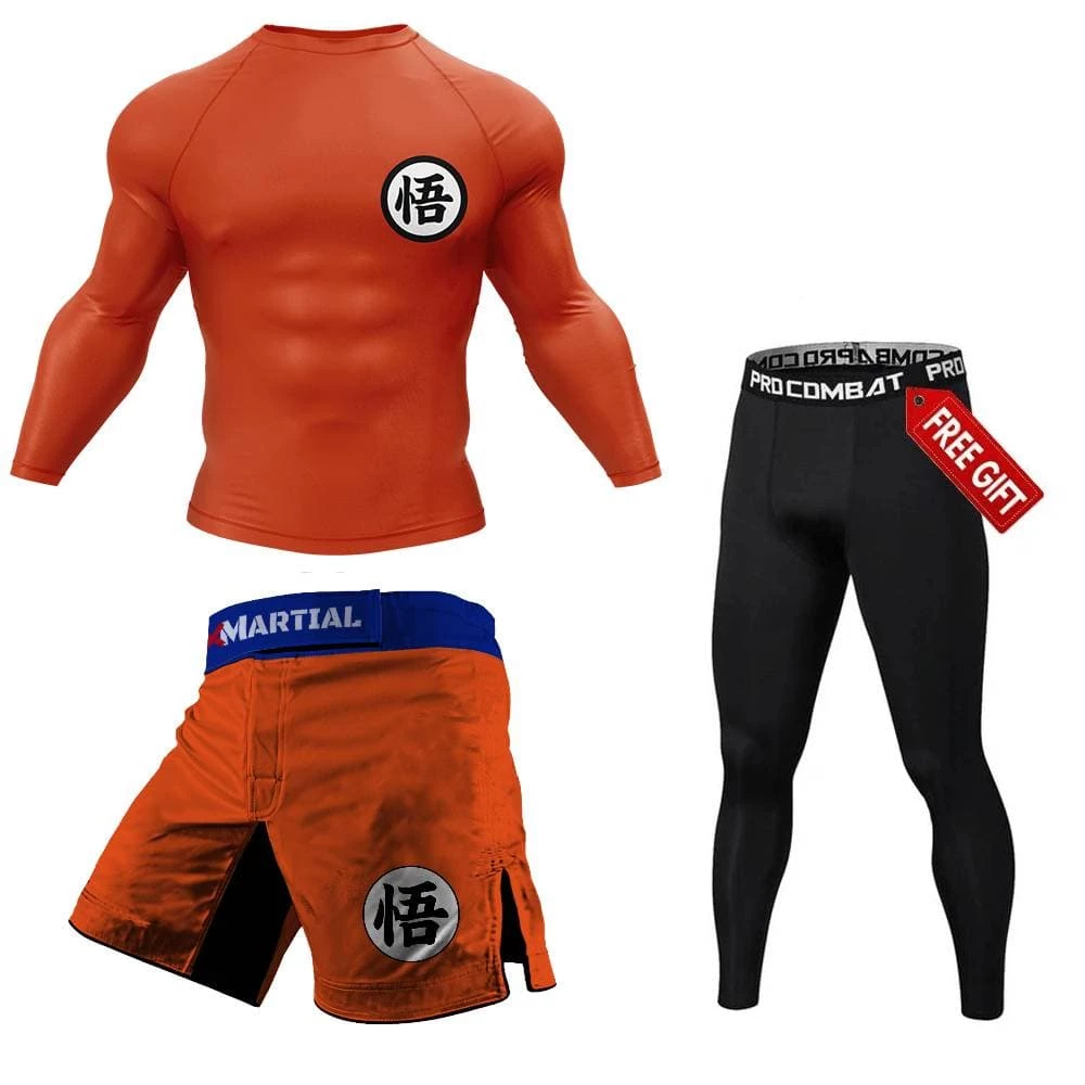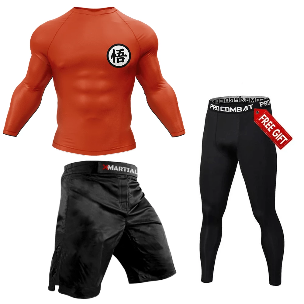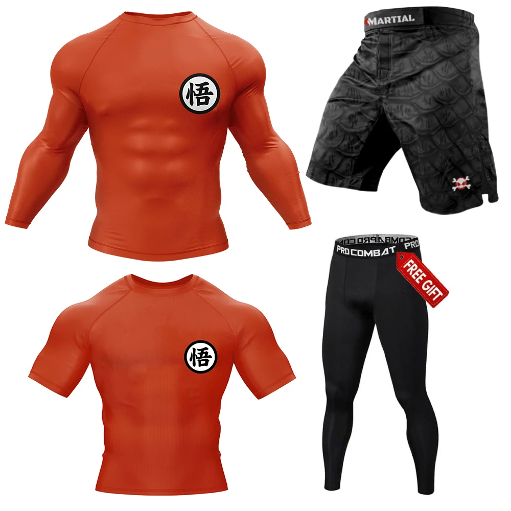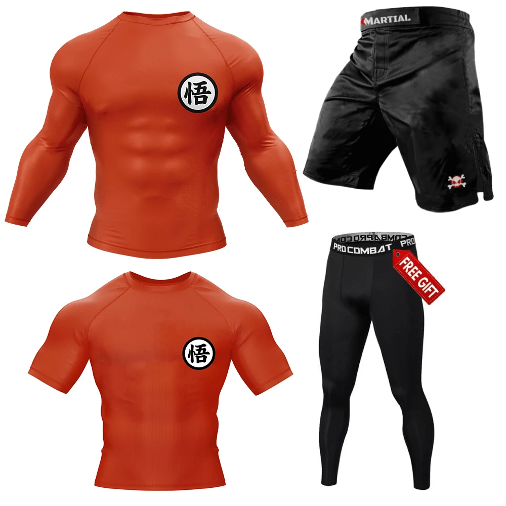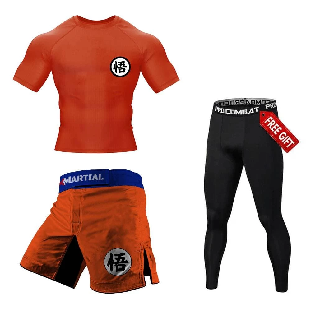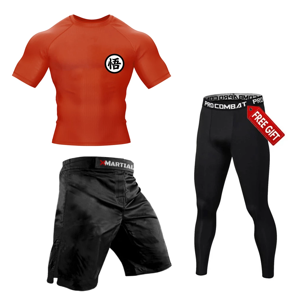 Goku Fightwear Bundle is designed to keep up with even the strongest warrior, the compression shirts, compression pants and MMA shorts featured in this bundle are perfect for high-intensity training. These items are great for jiu-jitsu, MMA, and as workout gear for men.