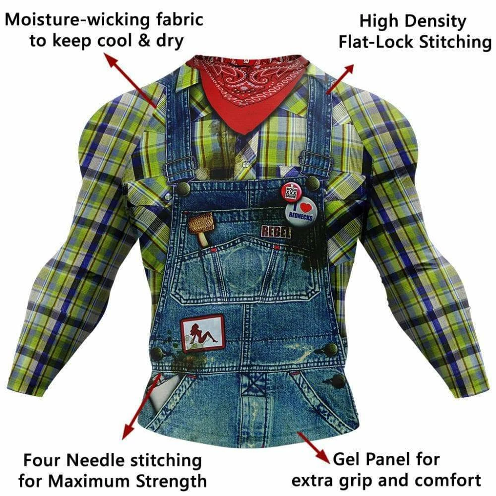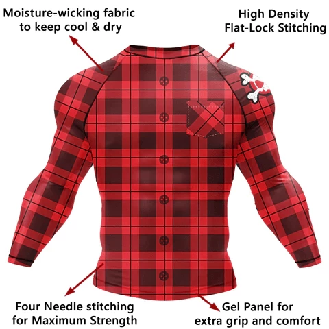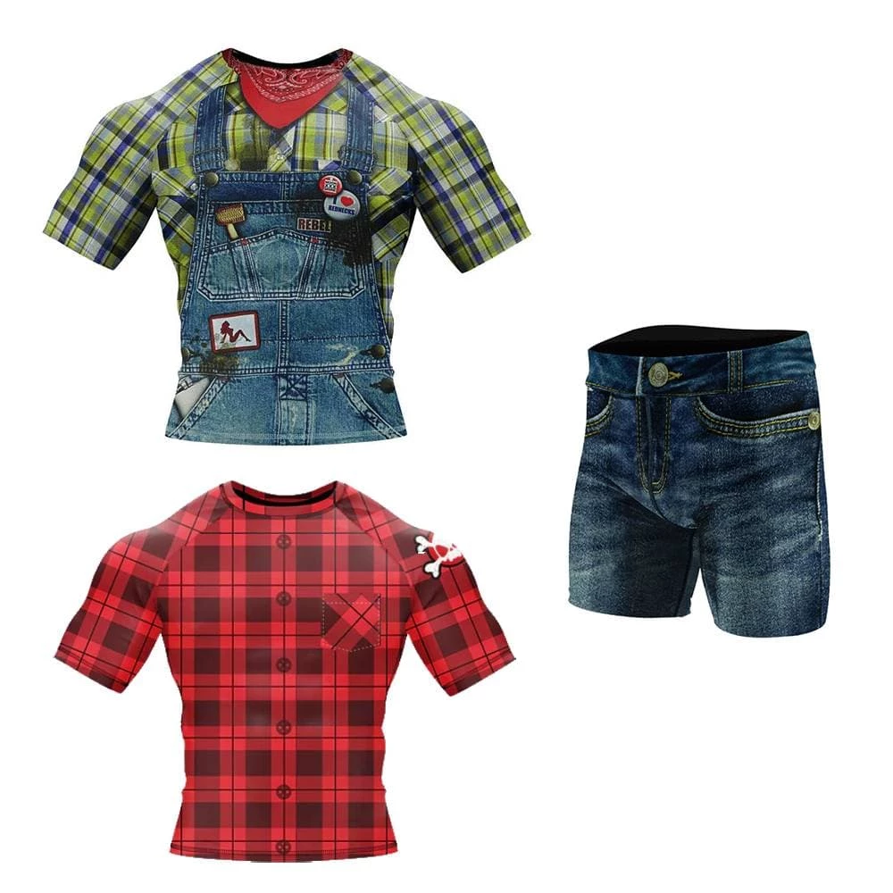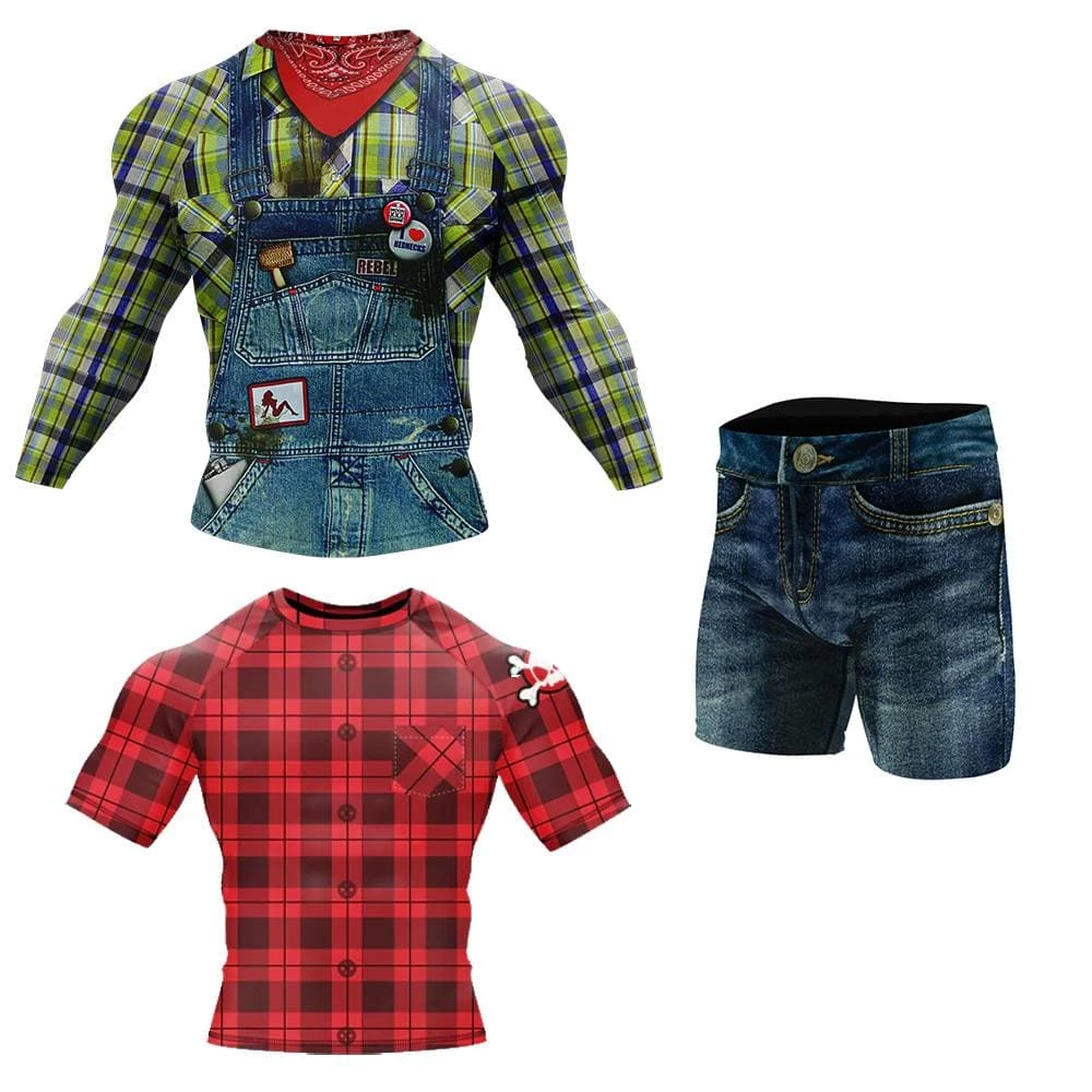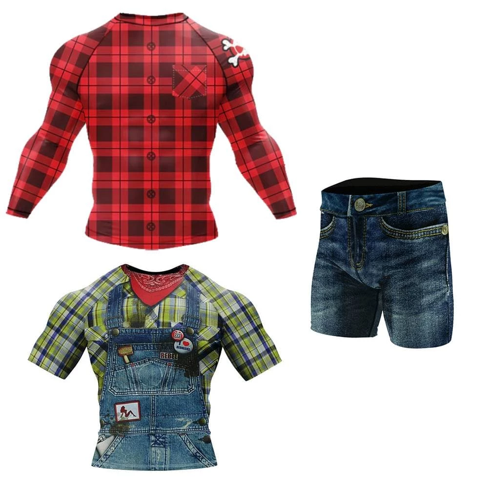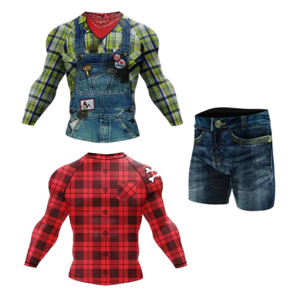 Hillbilly and Lumberjack Bundle features the Hillbilly Rash Guard and Lumberjack Rash Guard both in long sleeve or short sleeve, pair with vale tudo shorts. With all the signature backwoods details, this compression shirt and compression short duo are sure to turn heads at any competition. These items are perfect for BJJ, MMA, and as workout gear for men.