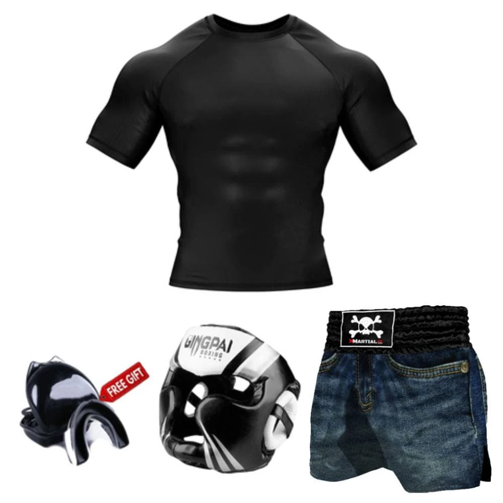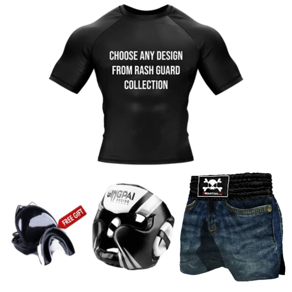 Check out our Hillbilly Muay Thai Gear and channel your inner warrior spirit! This bundle is curated to deliver to your utmost convenience. Our exclusive rash guard design paired with our Muay Thai Shorts with a FREE Mouthguard is the perfect combo!