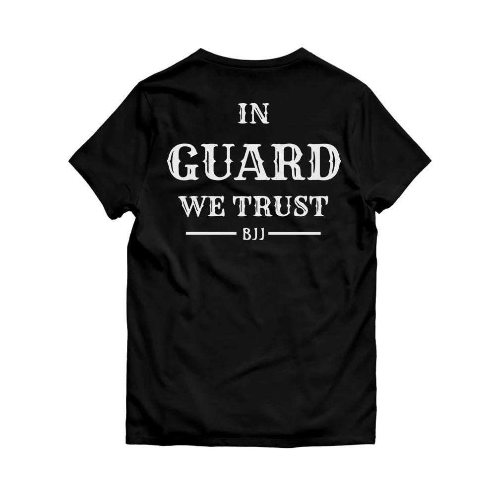 In Guard We Trust BJJ T-Shirt is designed for high-performance training and competition. This thick cotton t-shirt makes for a go-to wardrobe staple! It’s comfortable, soft, and its tubular construction means it’s less fitted.