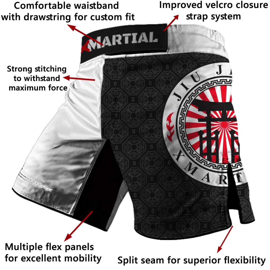 Japanese Torii Hybrid BJJ/MMA Shorts are perfect for dynamic striking and grappling training. These BJJ/MMA Shorts with these designs will not lose their vibrant color and are designed for high-intensity training. Great not just for MMA and BJJ training, but also for surfing, watersports, and workout shorts for men.Â