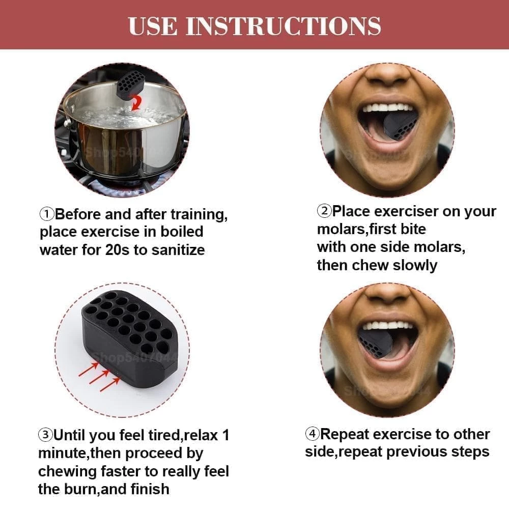- Easy to Use & Clean: After the first use and after the mandibular muscle exercise, it needs to be heated 20second in boiling water to make it more effective.