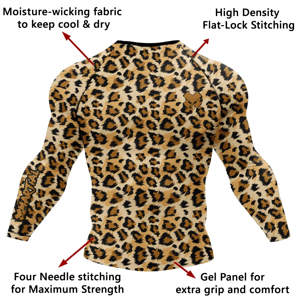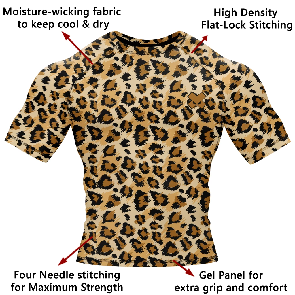 While wearing Leopard Rash Guard, take a look around your gym. Allow yourself to look wild and brave in a stylish compression shirt designed for your comfort and training. This rash guard is great for more than just jiu-jitsu! It’s ideal for MMA and BJJ rash guards, surfing, watersports, and as a men’s workout compression shirt.