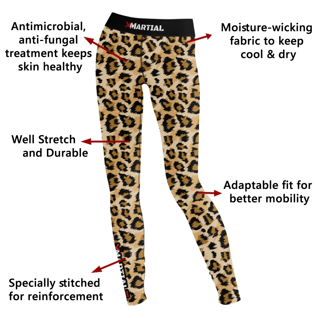 The Leopard Women’s Spats are lightweight, moisture-wicking, and offer the perfect amount of compression for maximum comfort. The beautiful design pattern adds standout style to an everyday wardrobe or workout wear. Start here and complete the rest of your look. Created with a polymer spandex blend, these compression pants will not lose their stretch even with intense training. Great as MMA and BJJ spats, for surfing, watersports, and workout compression pants for women.