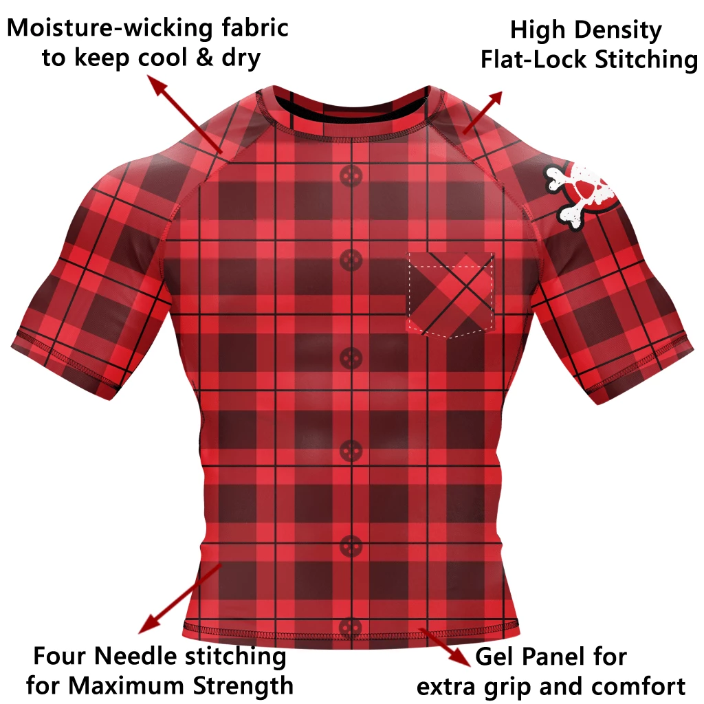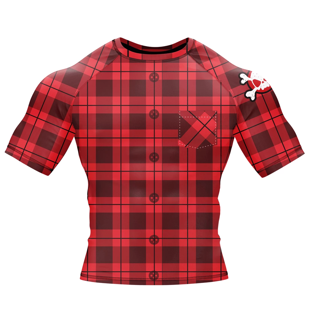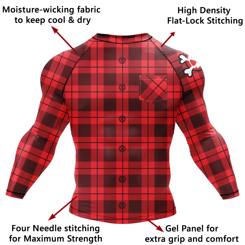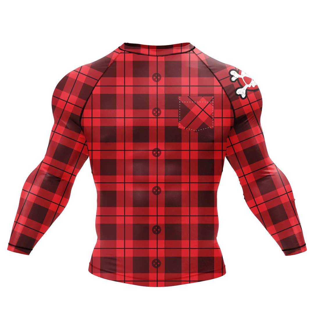 The Lumberjack Rash Guard is inspired by Raspberry Ape (Daniel Strauss), who believes that lifting in denim is the best strategy. This stylish compression shirt is intended for high-intensity training and competitions. Long and short sleeves are both available. This isn’t only for jiu-jitsu. Great for MMA and BJJ rash guards, surfing, watersports, and as a men’s fitness compression shirt.