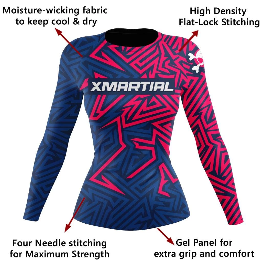 Maze Women’s Rash Guard will surely make you stand out from the crowd. A high-quality compression shirt designed to keep you comfortable and confident during your workouts. This rash guard is great for more than just jiu-jitsu! It’s ideal for MMA and BJJ rash guards, as well as surfing and watersports, and as a workout compression shirt for women.