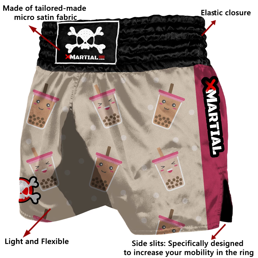 The craving never ends in our Boba Milk Tea Muay Thai Shorts! Try out the latest in our designs, With a traditional elastic waistband, these Muay Thai shorts will stay well-positioned no matter how rigorous the training is. There are also convenient side slits which mean that these Muay Thai shorts will allow you maximum movement. You can also use this for boxing, kickboxing, and everyday fitness workout.