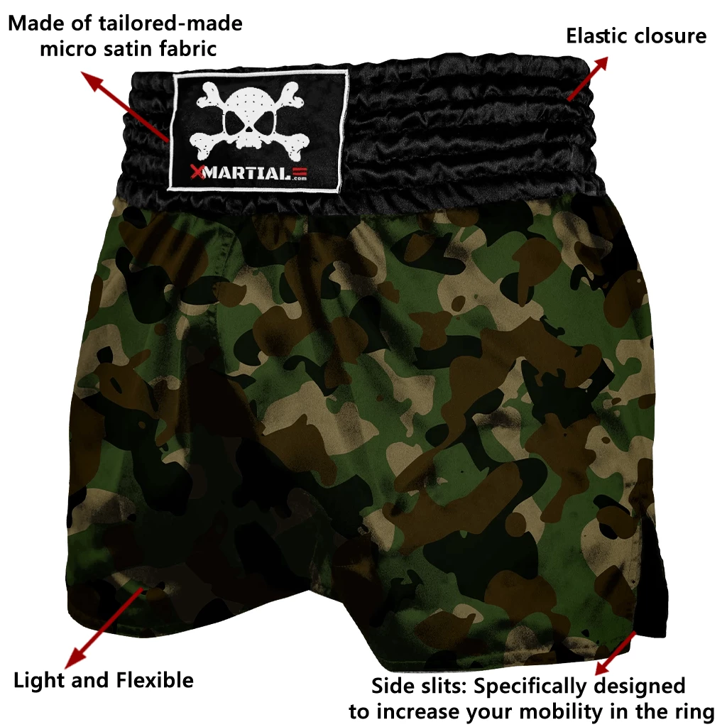 The Camo Muay Thai Shorts is a classic look for any sporting event. It features vivid colors and quality craftsmanship. With a traditional elastic waistband, these MMA shorts will stay well-positioned no matter how vigorous the training is. Convenient side slits mean these boxing shorts will allow you maximum movement.