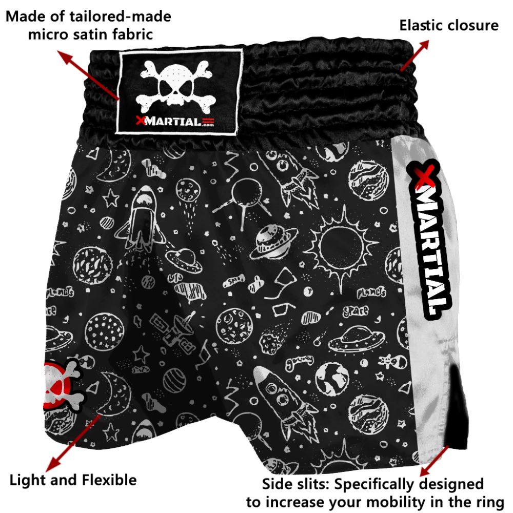 Our Muay Thai shorts are a collection of cosmic proportions we are very proud of! Try out the latest in our designs, the Cosmic Muay Thai Shorts! With a traditional elastic waistband, these Muay Thai shorts will stay well-positioned no matter how rigorous the training is. There are also convenient side slits which mean that these Muay Thai shorts will allow you maximum movement. You can also use this for boxing, kickboxing, and everyday fitness workout.