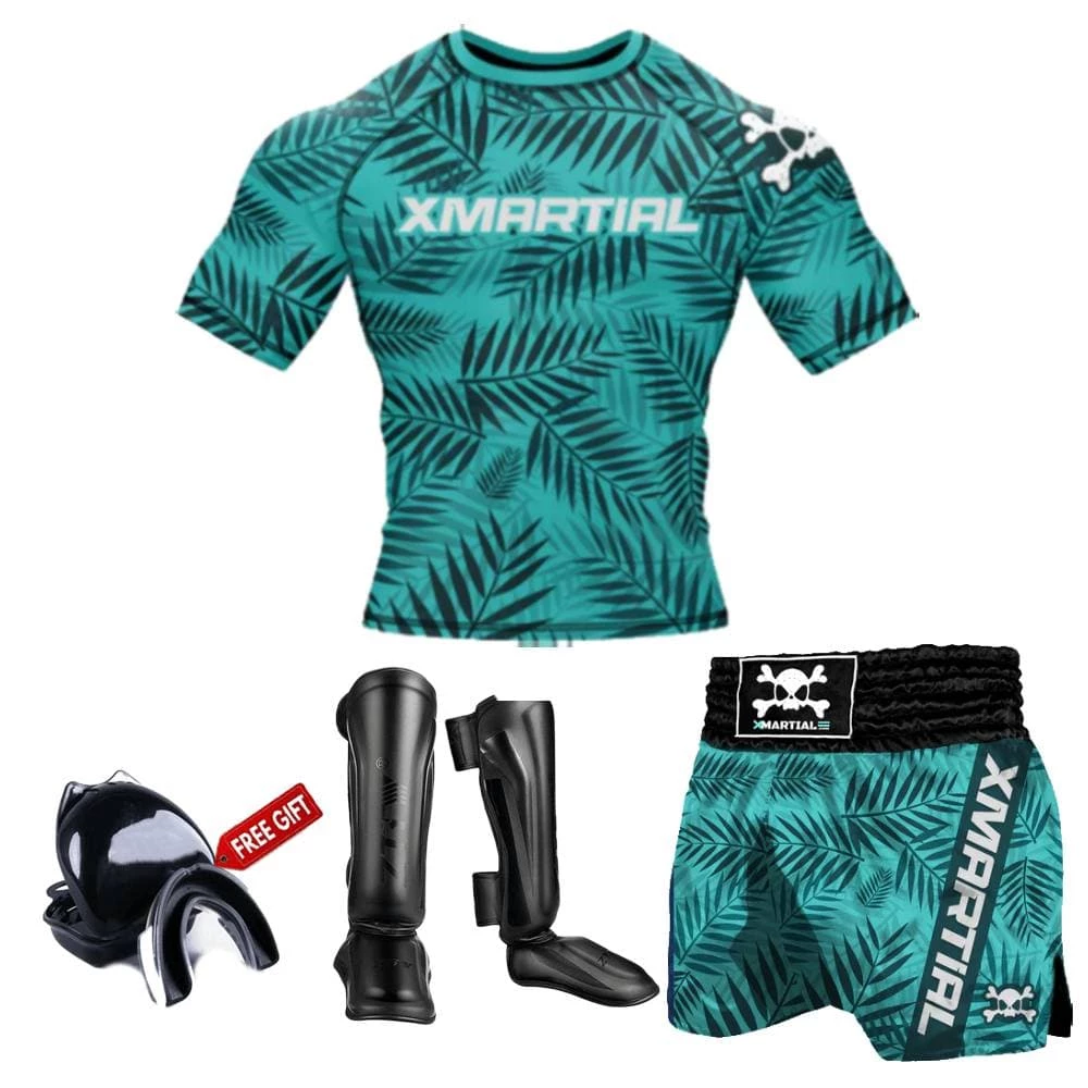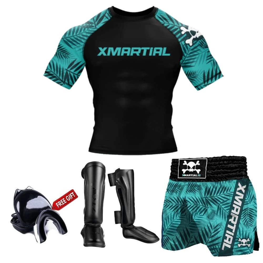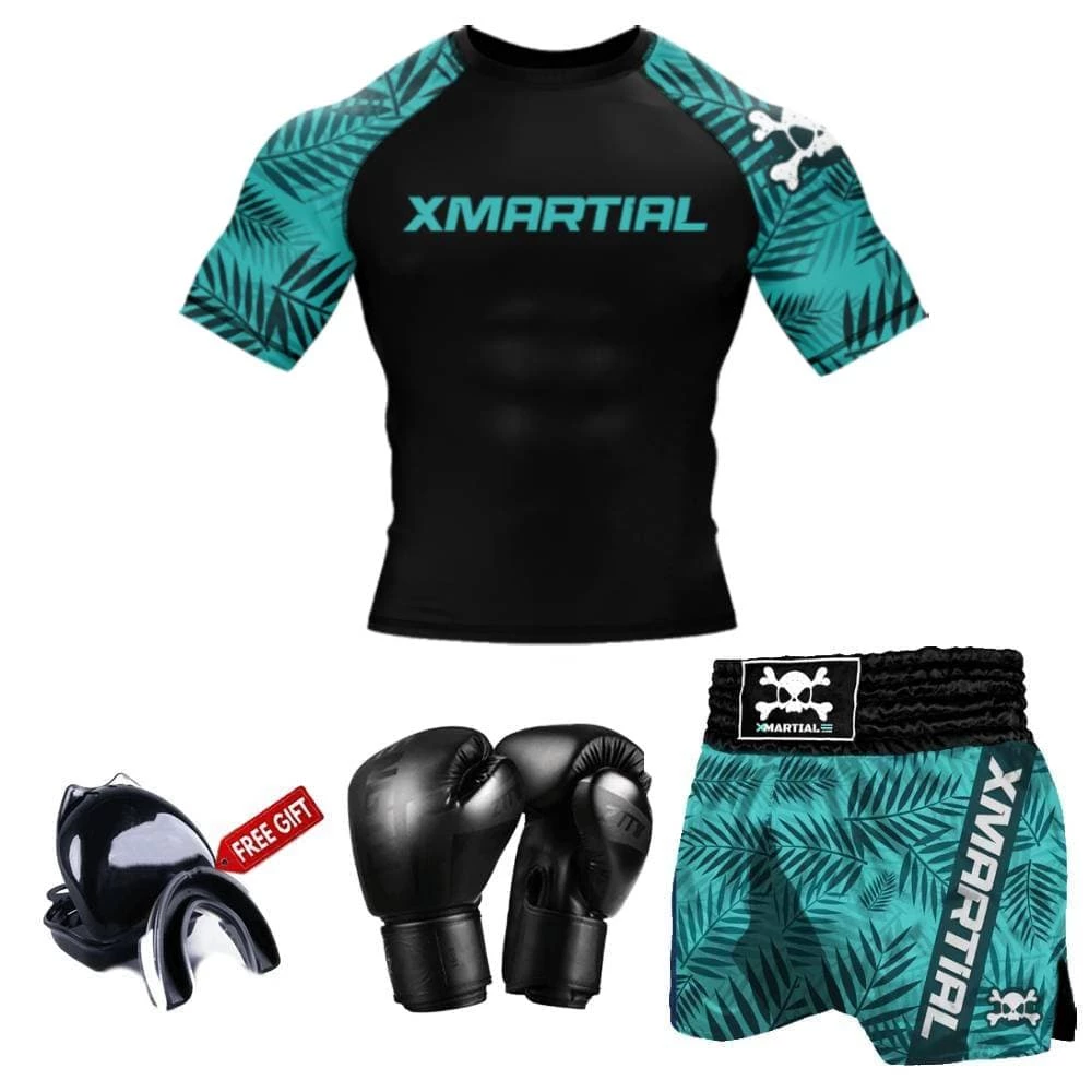Take your Muay Thai to the next level with the Tropical Muay Thai Gear. Bring uniqueness and style when going to the gym and training, this bundle is paired with XMartial exclusive design Muay Thai shorts and a FREE mouthguard. You may also pick Muay Thai sparring gear for competent training. Best used for Muay Thai, but can be used for MMA, kickboxing, BJJ, and general training.