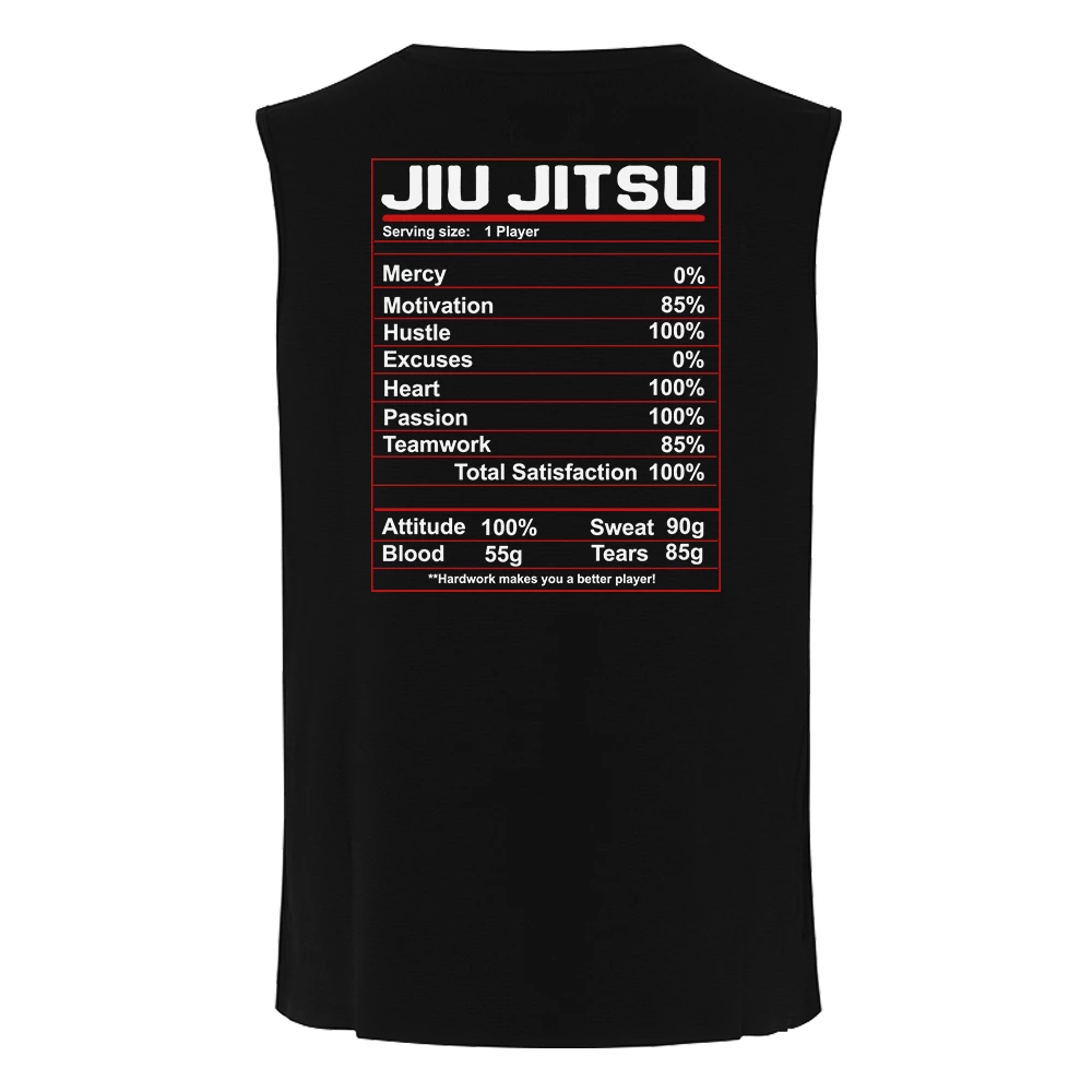 The BJJ training facts are here! Live, breathe and sweat in our Nutrition Label BJJ Tank Top