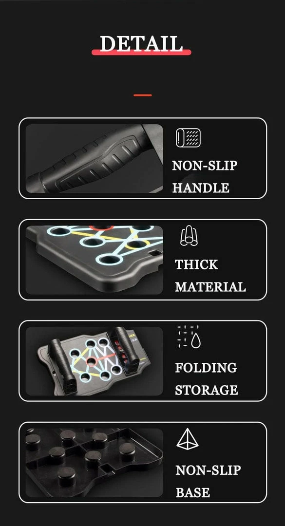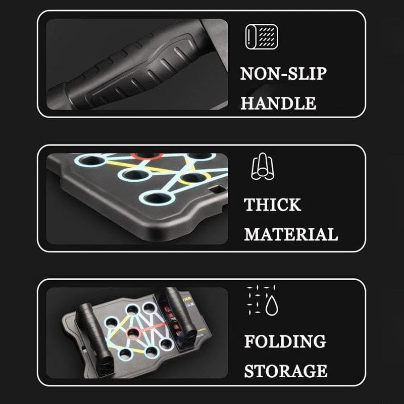 - Collapsible and easy to store. The foldable design of our push up board system makes it really easy to store and carry with you
