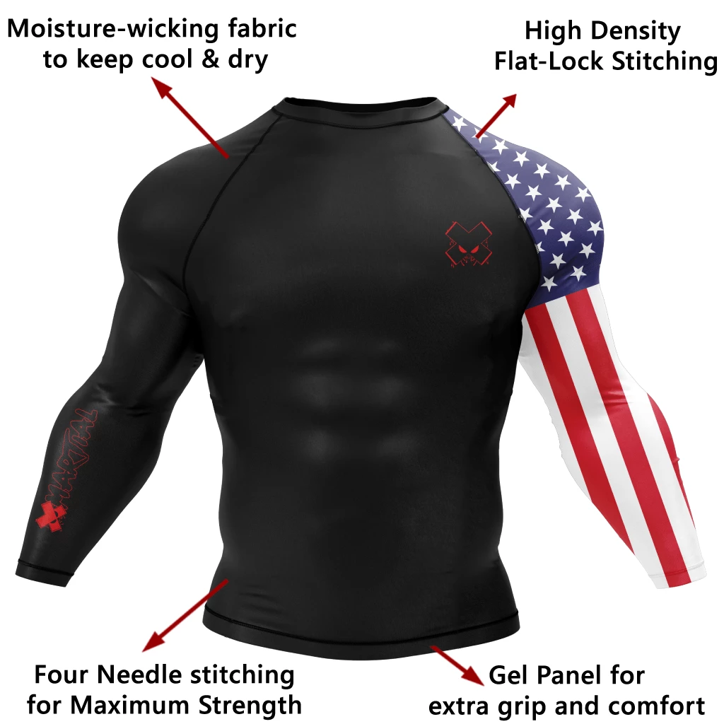Ignite your patriotic pride with this American Warrior Rash Guard. Created to last and provides you with the utmost comfort. Perfect for both indoor and outdoor activities, especially for BJJ and MMA.