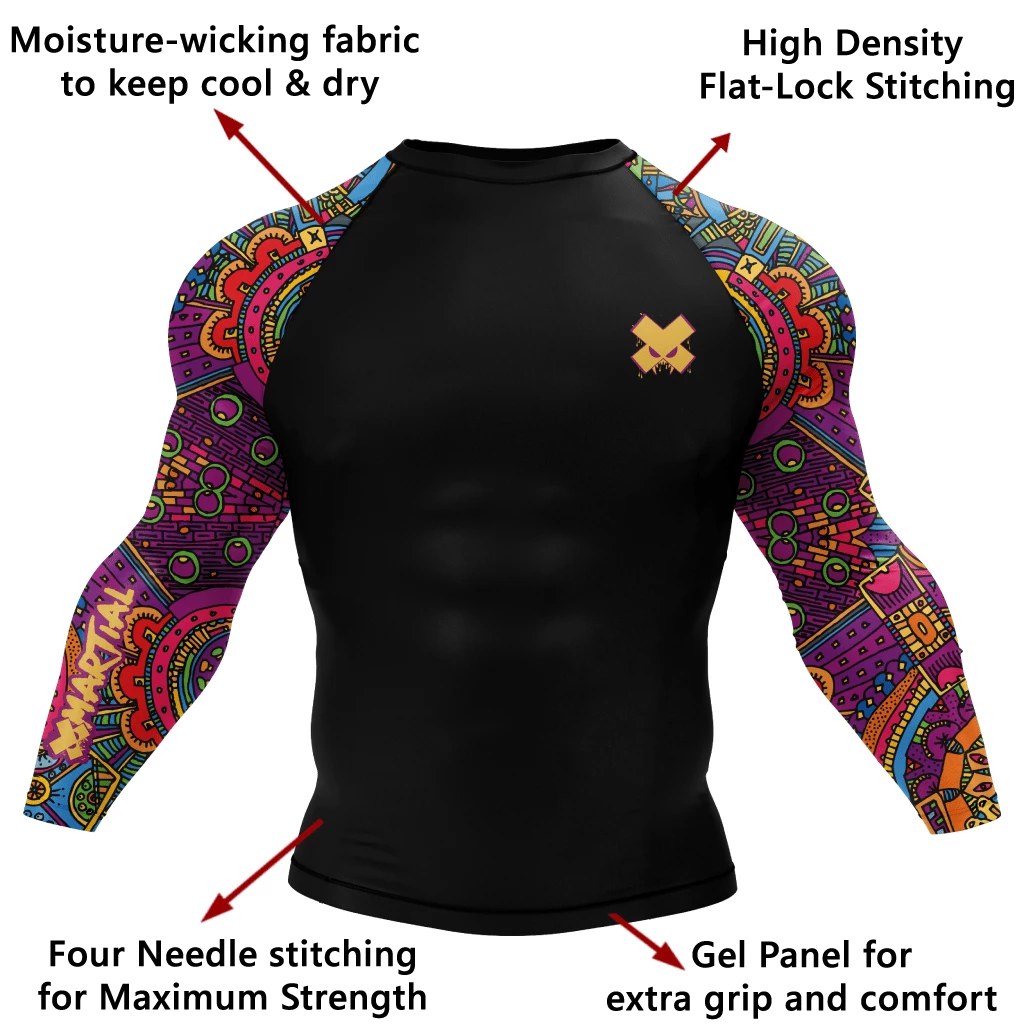 Wear the Aztec Rash Guard as a symbol of freedom and strength. Wear this refreshing and stylish design to exude confidence and strength. This rash guard is great for more than just jiu-jitsu! It’s ideal for MMA and BJJ rash guards, surfing, watersports, and as a men’s workout compression shirt.