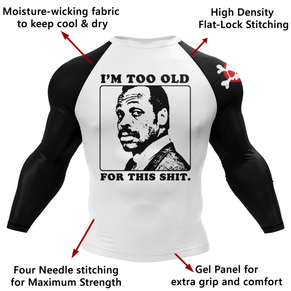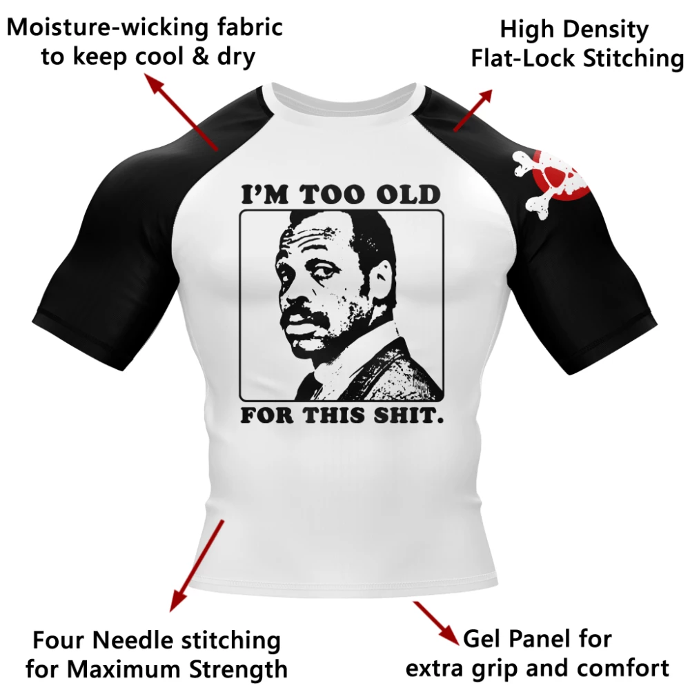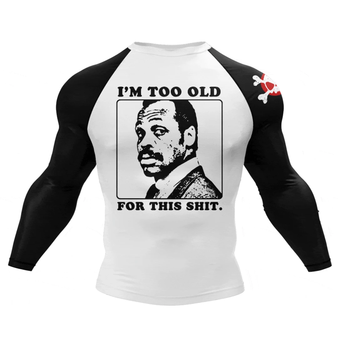 Too Old Rash Guard is a classic design with a modern twist. We’ve all been there: the point where no matter what the repercussions are, you’re just too old for any more crap. Now is your moment to let the world know how you really feel.