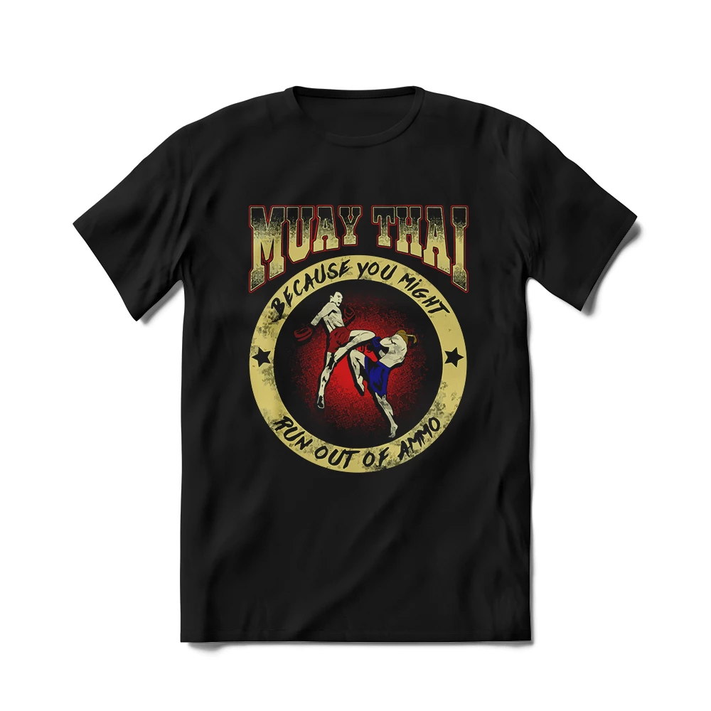 Run Out of Ammo Muay Thai T-Shirt is designed for high-performance training and competition. This thick cotton t-shirt makes for a go-to wardrobe staple! It’s comfortable, soft, and its tubular construction means it’s less fitted.