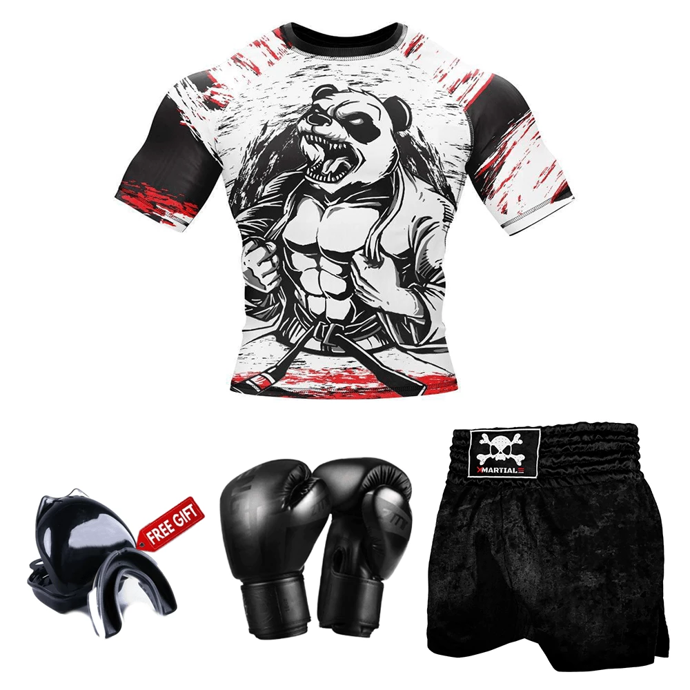 Take your Muay Thai to the next level with the Shredded Panda Muay Thai Gear. Bring uniqueness and style when going to the gym and training, this bundle is paired with XMartial exclusive design Muay Thai shorts and a FREE mouthguard. You may also pick Muay Thai sparring gear for competent training. Best used for Muay Thai, but can be used for MMA, kickboxing, BJJ, and general training.