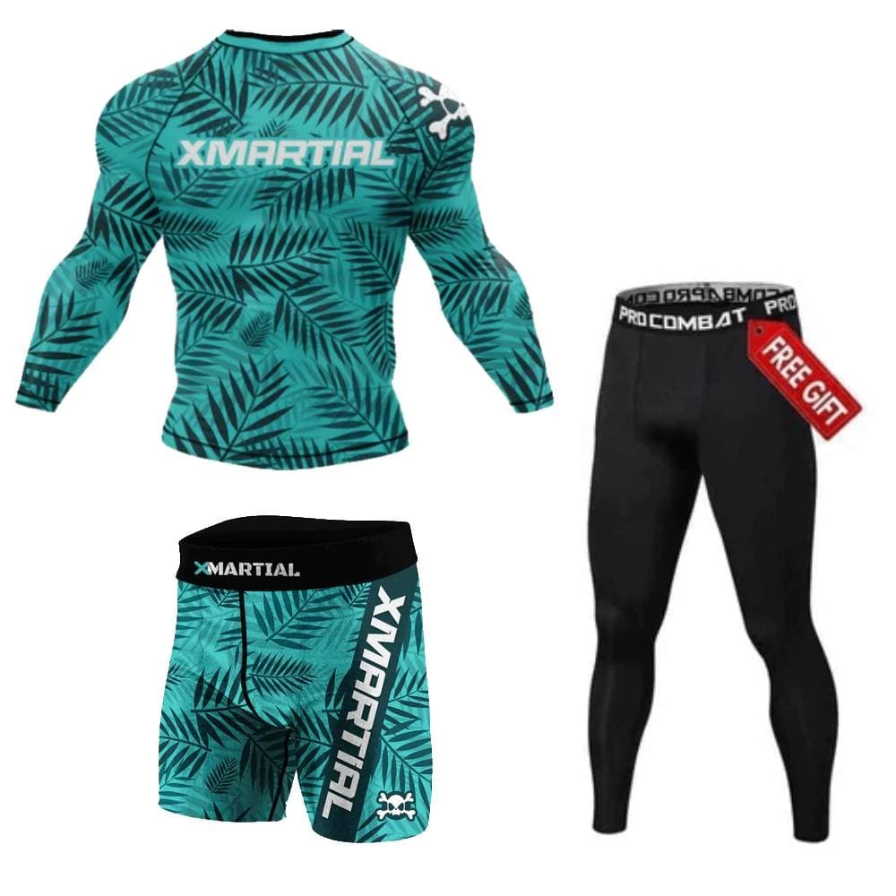 Feel vibrant and summery with this new Tropical Fightwear Bundle. Designed for high-performance training and competition, the compression shirts and compression pants featured in this bundle are built to last. These items are perfect for BJJ, MMA, and as workout gear for men.