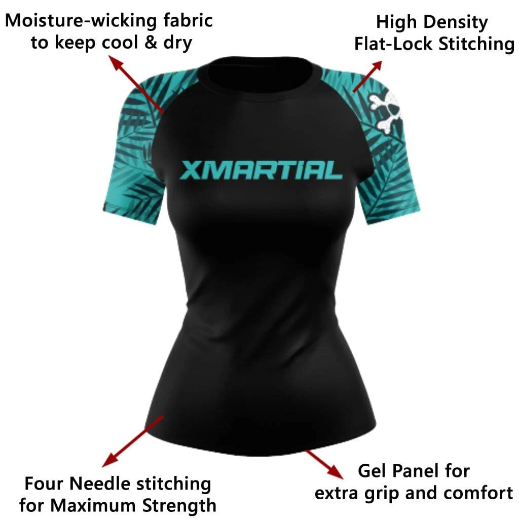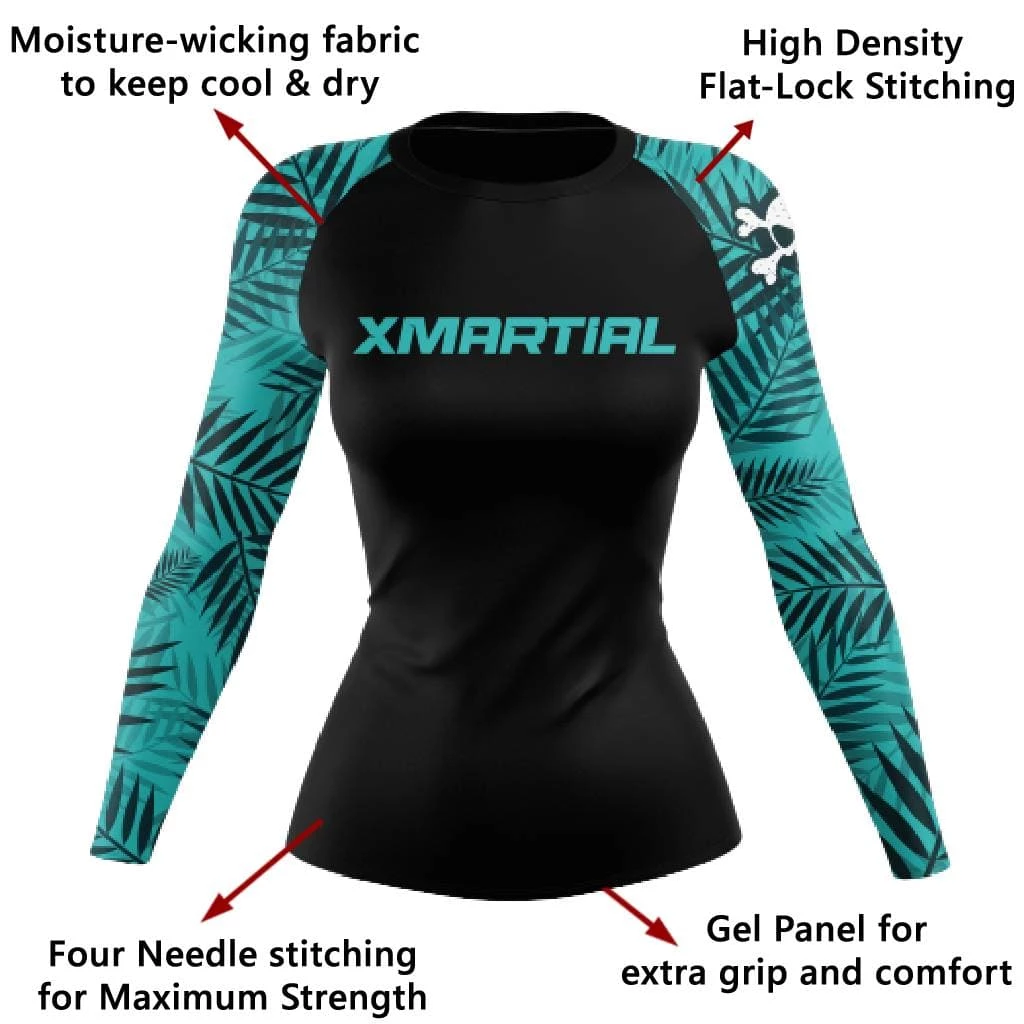 Feel vibrant and summery with this new Tropical Women’s Rash Guard. A high-quality compression shirt designed to keep you comfortable and confident during your workouts. This rash guard is great for more than just jiu-jitsu! It’s ideal for MMA and BJJ rash guards, as well as surfing and watersports, and as a workout compression shirt for women.